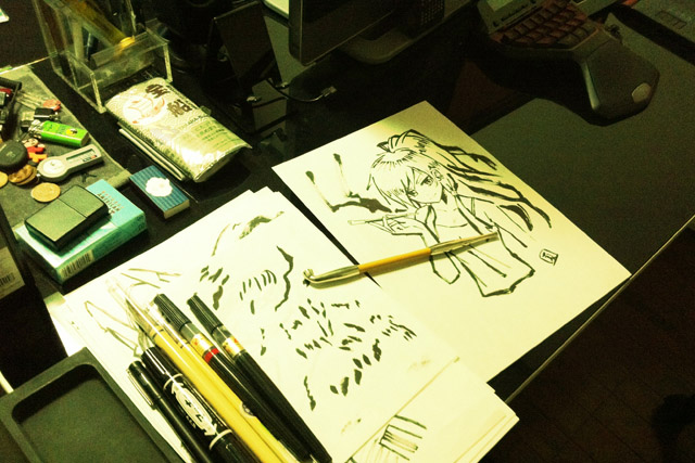 普段は全部デジタル作業でやってますが「筆」という雰囲気勝負に出ようと思っているので